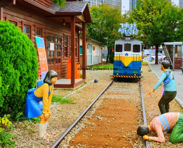일제강점기시절 공장을 세우기 위해 만들어진 철길로 약 2.5km 구간의 철길여행을 떠나보는것도 좋습니다. 쭉 뻗은 기찻길은 다채로운 풍경을 감상할 수 있습니다. 옛날 교복체험과 학창시절로 돌아간것 같은 불량식품을 파는 문방구까지 옛날 감성을 느낄 수 있는 여행지입니다.