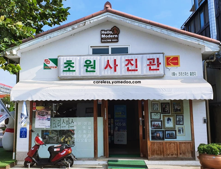 8월의 크리스마스 영화 속 촬영지 초원사진관 군산 핫플레이스입니다. 사진관 건물 딱 하나 있는데 볼거리가 생각이상으로 많았습니다. 건물외부부터 무언가 레트로한 감성을 느낄 수 있었습니다.
