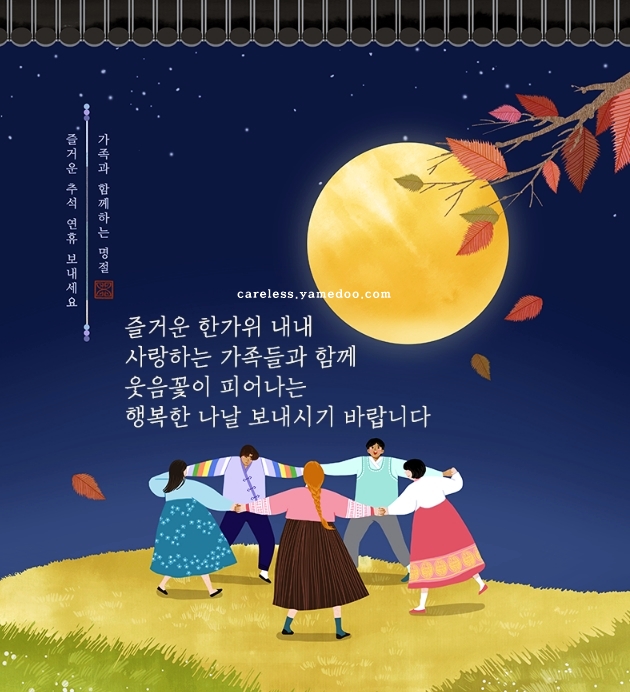 22. 행복한 추석명절입니다. 웃음가득 추석명절 되길 희망하며비록 몸은 멀어도 마음만은 가깝게 있습니다. 평화롭고 행복한 추석 연휴 보내시길 기원합니다.