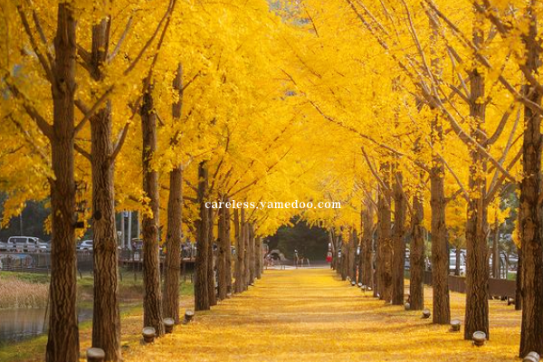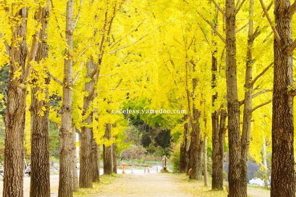 늦가을 노랗게 물든 은행나무잎이 아름다운 풍경입니다.